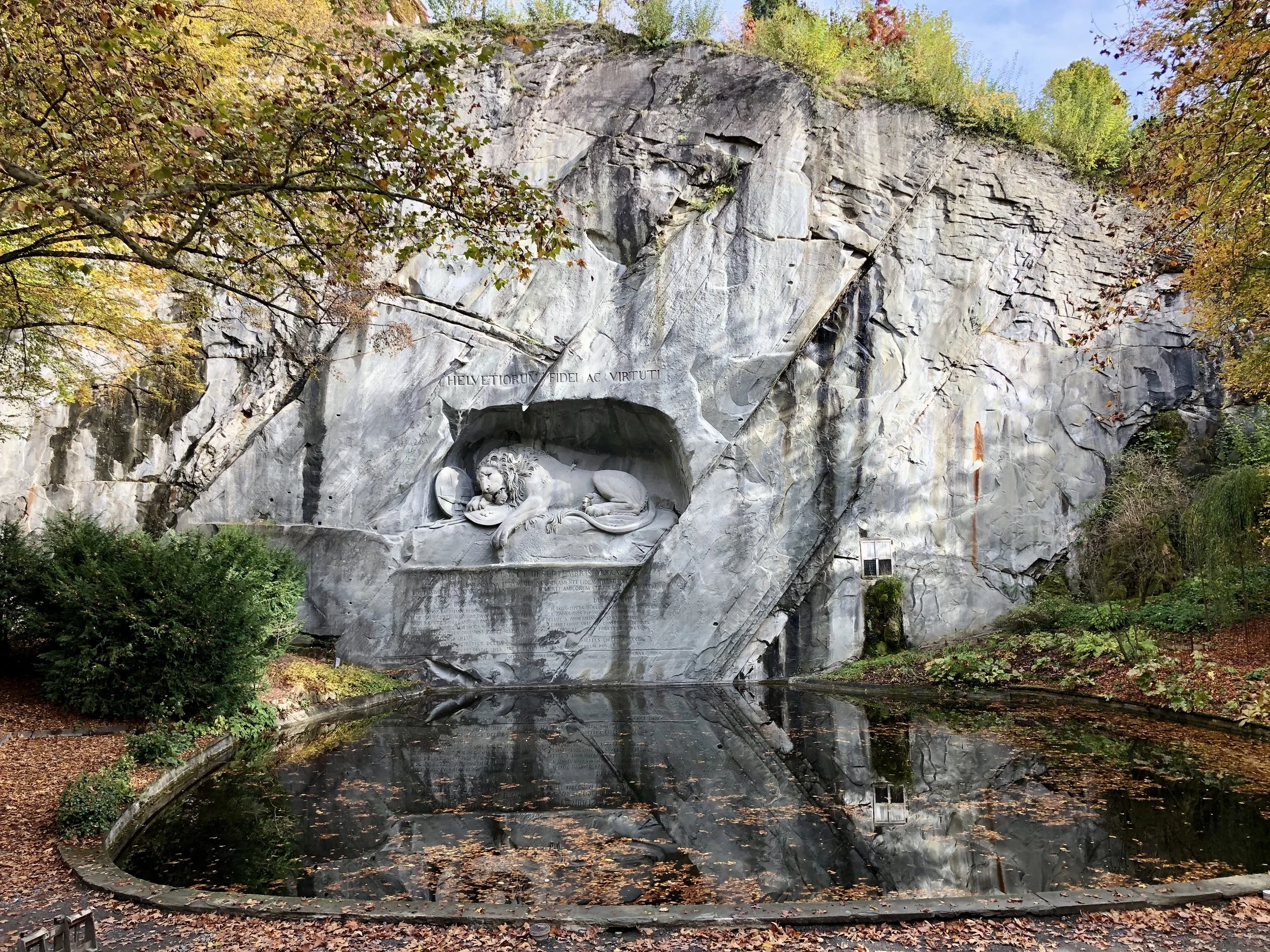 The lion of Lucerne is a stone carving that has been owned by Lucerne since the 1800's. It is a memorial for the Swiss guards who served in the French Revolution. It is a beautiful spot to stop by. It is located just behind the center of old town, you can easily walk or take public transport to get there.
